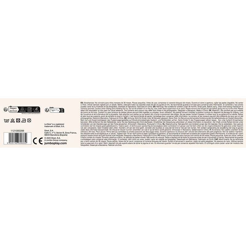 Carrito cuco de paseo fácil y rápido de montar, con estructura metalizada plegable y muy resistente, cómodo manillar y bolso de paseo. El muñeco que puede ir en el cuco puede medir entre 30 y 42 cm. El capazo, la canastilla y el bolso canastilla de paseo se retiran fácilmente para poder lavar a máquina. La altura del cuco es de 81 cm y se recomienda para niños de 3 a 4 años.