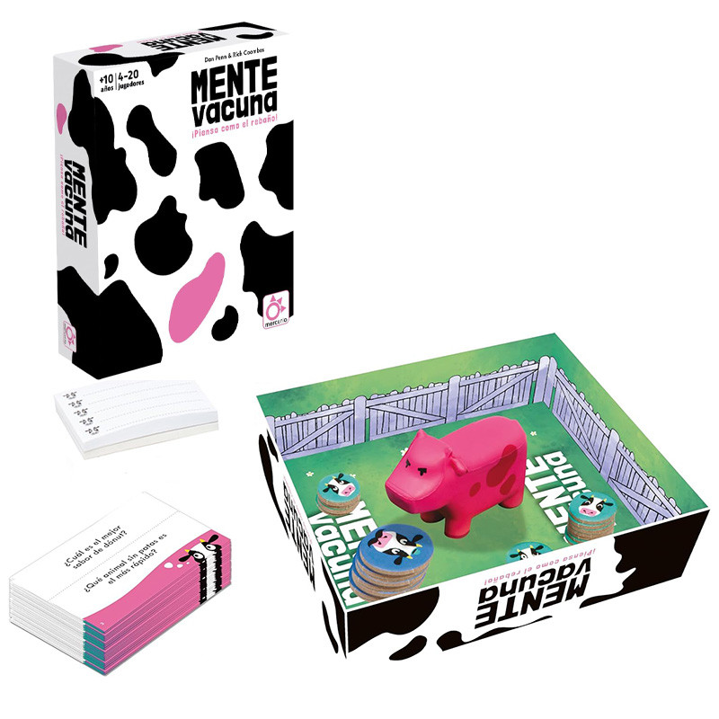 El primer jugador en conseguir 8 fichas de vacas ¡es el ganador! Un party game para familias, amigos y ¡vaqueros!