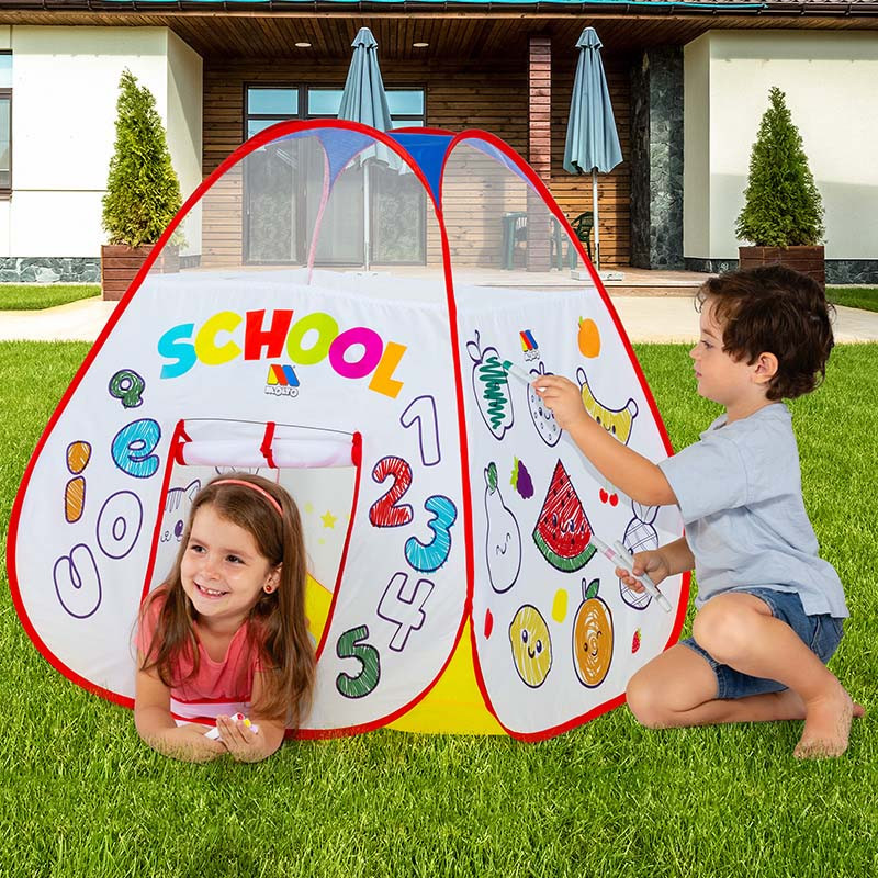 Sus paredes actúan como un gran lienzo donde los niños pueden dibujar y escribir con rotuladores. El diseño es borrable, lo que permite limpiarla con un paño y empezar de nuevo infinitas veces. Fomenta el juego imaginativo y el desarrollo artístico de forma fácil y reutilizable.