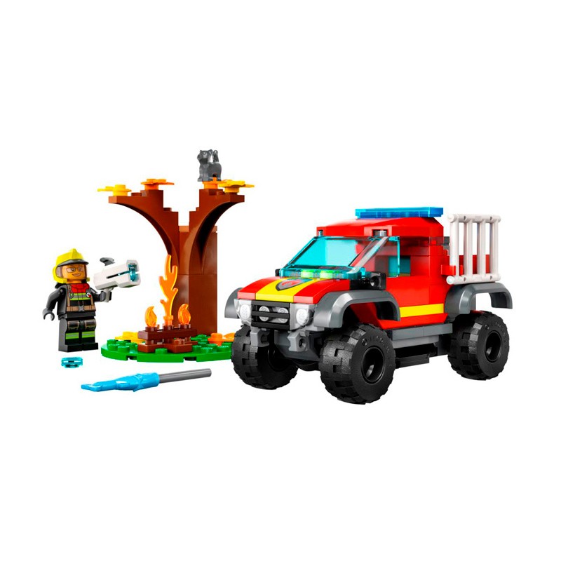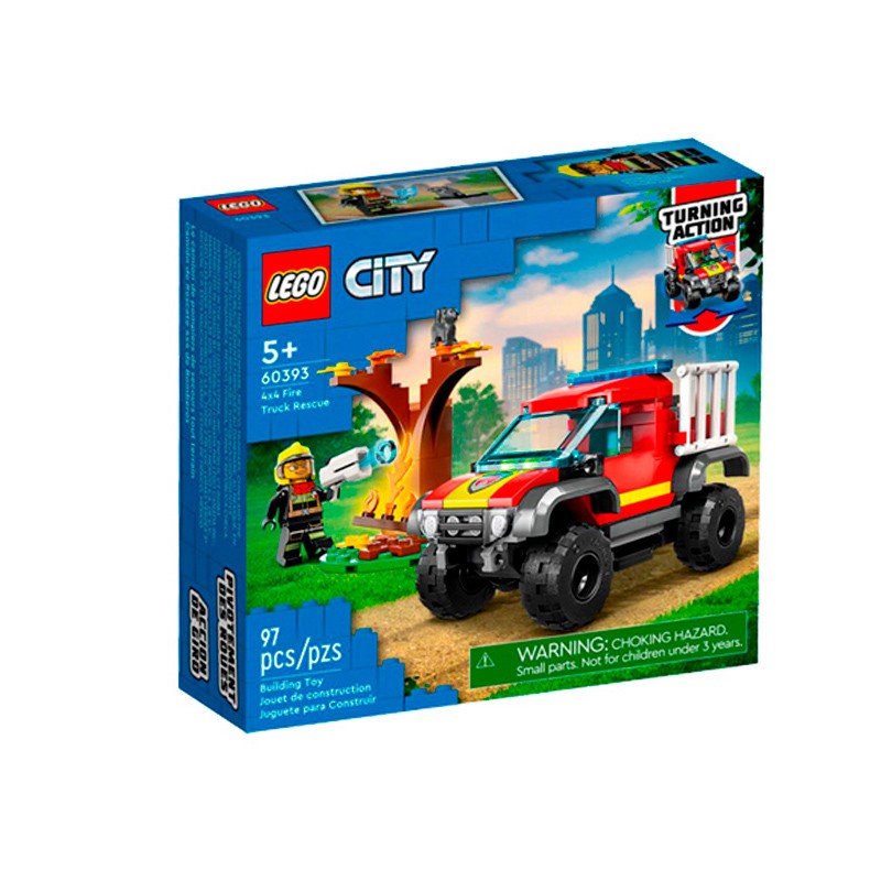 ¡Prende la llama de la imaginación y activa la creatividad de tu peque con el set de juguetes LEGO City Camión de Rescate 4x4 de Bomberos (60393)! Contiene un compacto 4x4 equipado con gruesos neumáticos, una cabina que se abre y un lanzador de elementos LEGO que representan agua. Este set incluye también una escena de una hoguera con llamas LEGO, así como una minifigura de una bombera y una figura de un gato. Guía de construcción digital interactiva Este set 5+ viene con una guía de construcción impresa y con la app LEGO Builder: una guía interactiva para pasarlo aún mejor construyendo. Esta cuenta con herramientas de acercamiento y giro que permiten a los niños visualizar los modelos desde todos los ángulos mientras conectan sus piezas. El inspirador mundo de LEGO City Los sets LEGO City llevan a los peques al centro de la acción y les proporcionan detallados edificios, vehículos realistas e inspiradores personajes que les invitan a imaginar historias y jugar a interpretarlas.