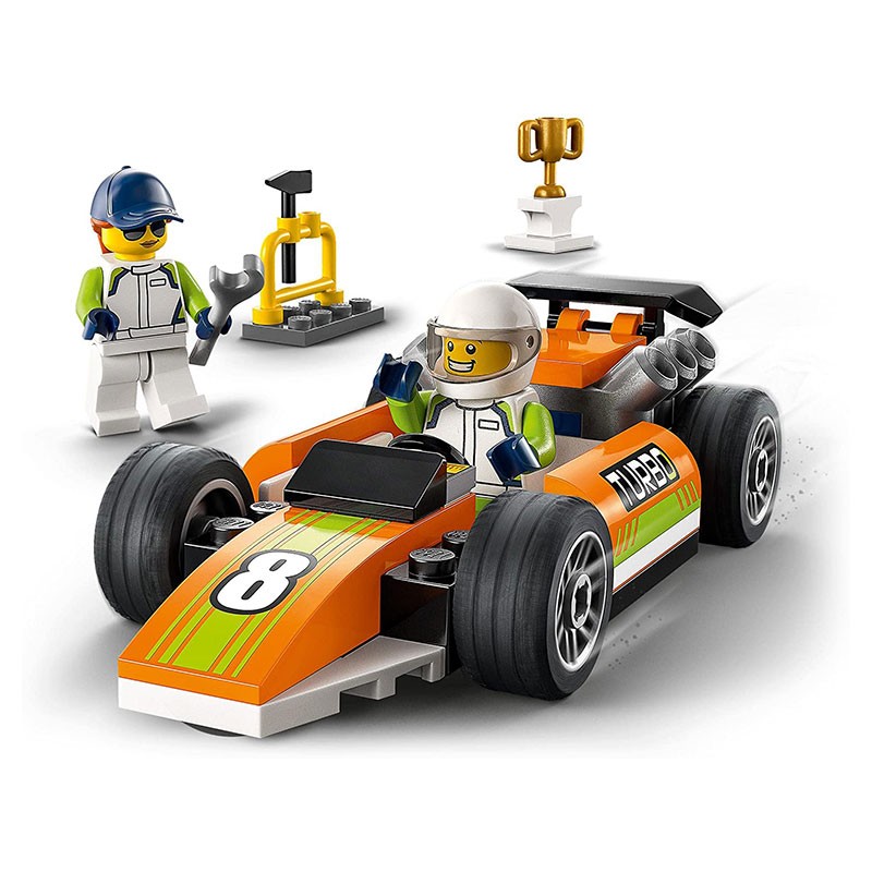 Introduce a tu peque en un mundo de diversión y emociones con el juego de juguetes LEGO City Coche de Carreras (60322), que contiene un coche de estilo F1, herramientas y un trofeo de campeón. ¡Combínalos con las minifiguras incluidas de una mecánica y un piloto de carreras para vivir apasionantes aventuras durante horas! Construcción divertida para niños y niñas de 4 años o más Este set de construcción de juguete 4+ trae una guía ilustrada impresa y un ladrillo LEGO para principiantes: una base premoldeada de la que partir para montar el modelo. Descubre también las instrucciones de construcción digitales de la app gratuita Instrucciones de Montaje LEGO. Esta increíble guía interactiva permite a los peques acercar, girar y visualizar la maqueta terminada desde todos los ángulos mientras construyen. Un mundo de diversión Los sets LEGO City Grandes Vehículos llevan a los niños al centro de la acción con geniales juguetes que meten la directa hacia el juego imaginativo más trepidante.
