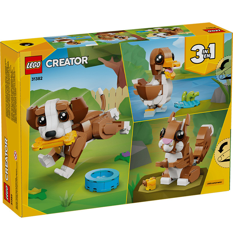¡El set de construcción LEGO® Creator “3 en 1” Simpáticos Animales: Cachorro Juguetón (31382) te permitirá interpretar divertidas historias! Este simpático juguete para niños y niñas a partir de 8 años les ofrece 3 opciones de construcción diferentes con los mismos ladrillos.