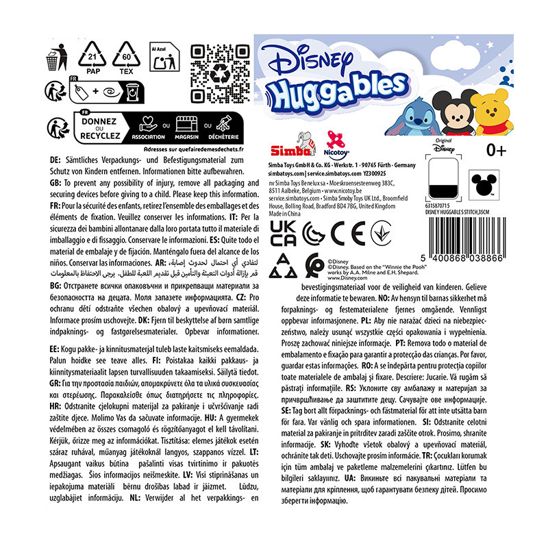 Este producto forma parte de una línea de peluches achuchables de Simba Toys, disponible en diferentes personajes, todos ellos desarrollados con los mismos estándares de calidad, tamaño y suavidad.