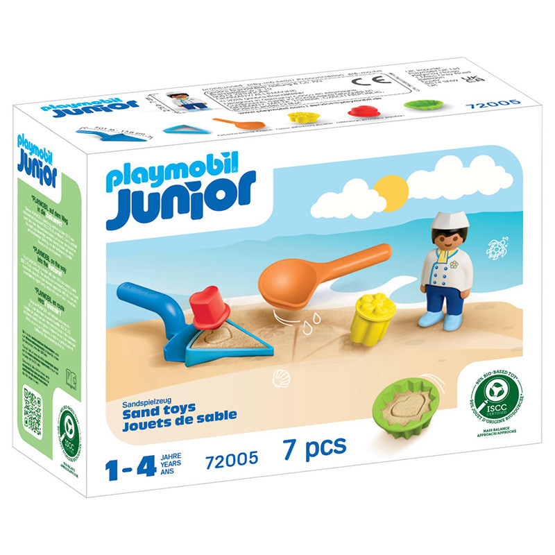Con los moldes de arena de PLAYMOBIL JUNIOR, los futuros expertos y expertas del horneado pueden hacer una y otra vez creaciones tentadoras. ¿Tiene ya la masa de arena la consistencia correcta? La espátula y el triángulo de tarta permiten formar poco a poco un pastel que te pondrá los dientes largos. Con dos sellos, que se pueden utilizar por ambos lados, los pequeños y pequeñas artistas de los postres pueden decorar el pastel con hasta cuatro motivos diferentes. Voilà, ¡la obra maestra ya está lista! Lo único que queda por resolver es quién recibirá el primer trozo...