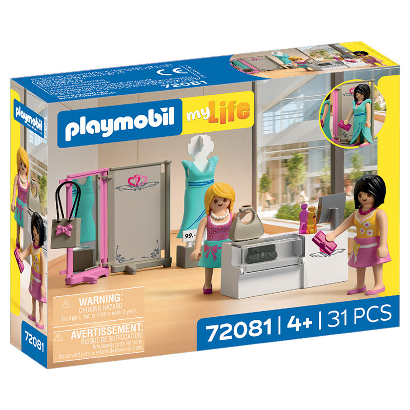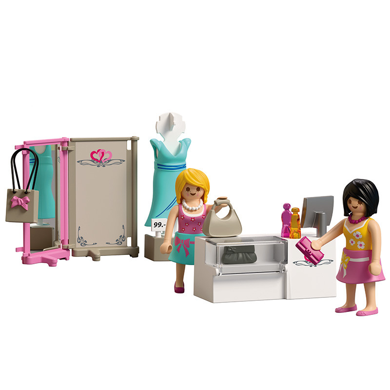 Tras dar un paseo por la ciudad, la cliente pasa por su boutique de moda favorita. Además de ropa puede ver complementos, como bolsos y perfumes. La cliente ha encontrado un vestido muy bonito en el escaparate y la atenta vendedora sugiere que se lo pruebe. ¿Comprará el vestido? ¿O eligirá un bolso o perfume?