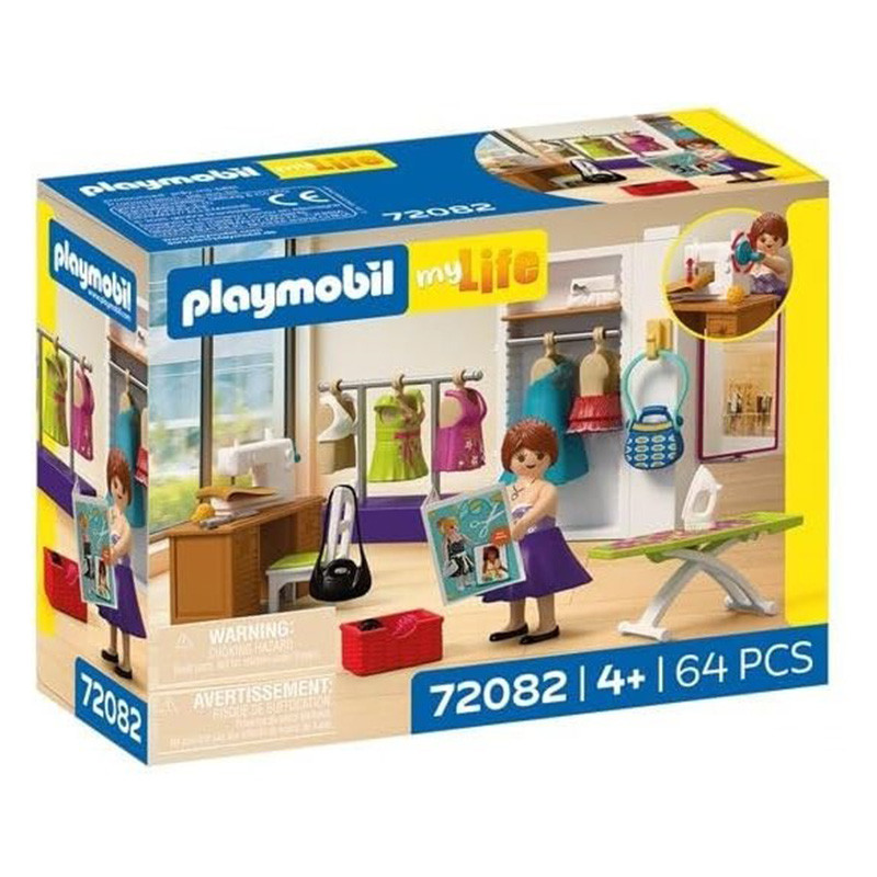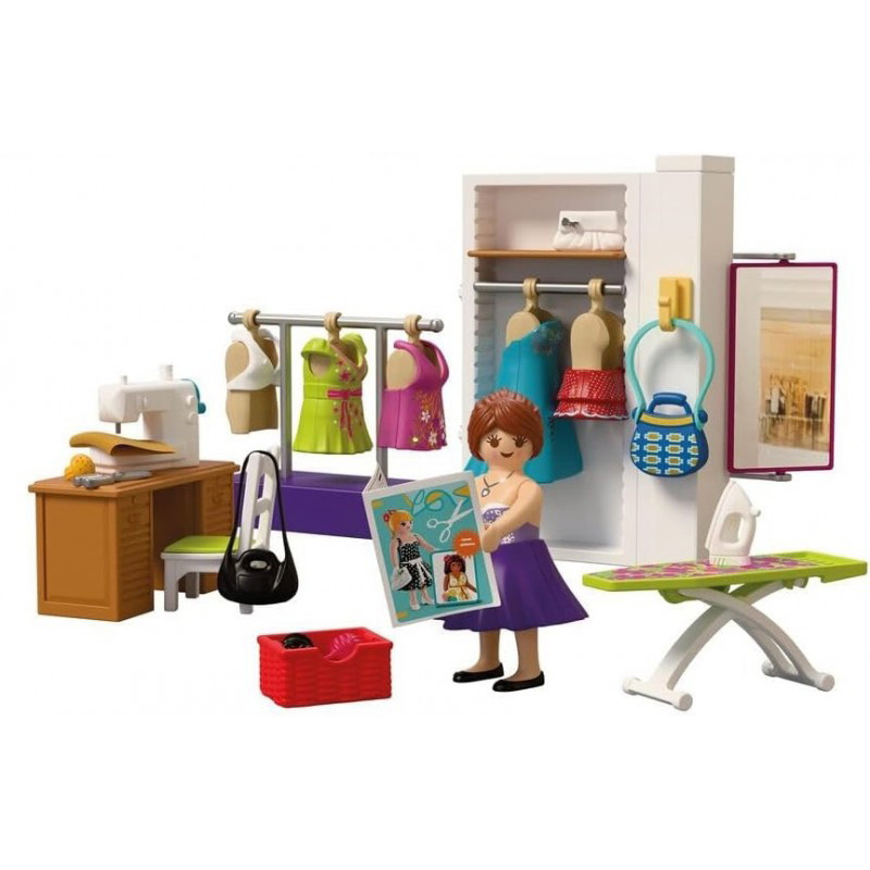 La diseñadora de moda diseña y crea nuevas prendas en su estudio de costura. Ella obtiene la inspiración consultando revistas. Para cortar la tela, utiliza su máquina de coser. La aguja se mueve arriba y abajo con solo girar la manivela. Para ver si aún hay que cambiar el diseño, le gusta probarse ella misma las prendas. Suele diseñar vestidos, faldas y tops, que guarda en su perchero. Como complemento, coge uno de sus tres bolsos y luego se mira en el espejo. Una vez que todo está bien ajustado, solo tiene que planchar y colgar la ropa para su venta.