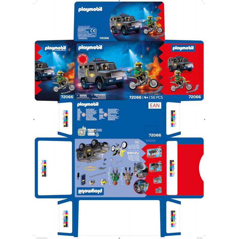 El vehículo de las fuerzas especiales altamente equipado corre rápidamente hacia la escena del crimen: ¡la unidad especial está lista para entrar en acción! El agente coge su escudo y las armas están listas para usarse como elemento disuasorio, ya que el fugitivo se desplaza a toda velocidad en su motocicleta. Este intenta escapar de la policía arrojando ganchos y objetos robados. Pero los policías guardan un as en la manga que puede ser decisivo. ¿Podrán detenerlo?