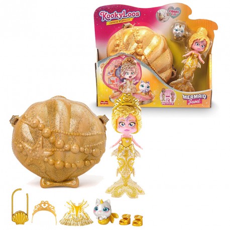 La sirenita de Kookyloos Mermaids Jewel viene en su propia concha brillante, que es al mismo tiempo un escenario para jugar y un bolsito para llevar donde quieras. Dentro encontrarás varios accesorios y la mascota exclusiva que la acompañará en todas sus aventuras. Además, viene con su cola de sirena, que puedes quitar para descubrir sus piernas y vestirla con su outfit ultra-fashion.
