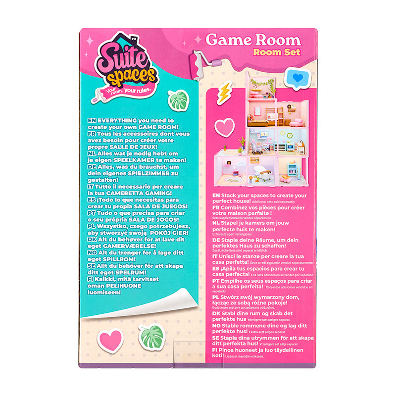 Con Suite Spaces Sala Gamer montarás tu propio setup con aro de selfie, cómics que brillan en la oscuridad y muebles para organizar todo. ¡Perfecta para tus momentos de juego, creación y diversión! Incluye: 20 accesorios + 2 papeles de pared + 1 papel de suelo.