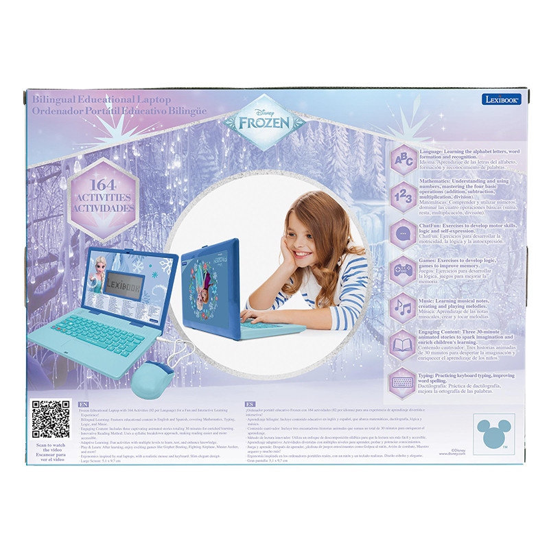 Portátil educativo con 164 actividades (82 en cada idioma) para una experiencia de aprendizaje divertida e interactiva con Frozen!
