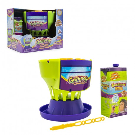¡Presentamos la nueva Gazillion Bubbles Ultimate Bubble Craze, nuestra máquina más grande hasta ahora! Para comenzar la fiesta de burbujas, simplemente vierte la solución en la parte superior de la máquina, presiona el botón y observa cómo un torbellino de burbujas llena el aire. Con luces LED incorporadas, esta máquina atraviesa un arco iris de colores, ¡transformando el tiempo de juego en un espectáculo instantáneo de luces de burbujas! Incluye 1 litro de solución de burbujas Gazillion en versión TetraBrik. Requiere 8 pilas AA. Apropiado para niños de 3 años en adelante.