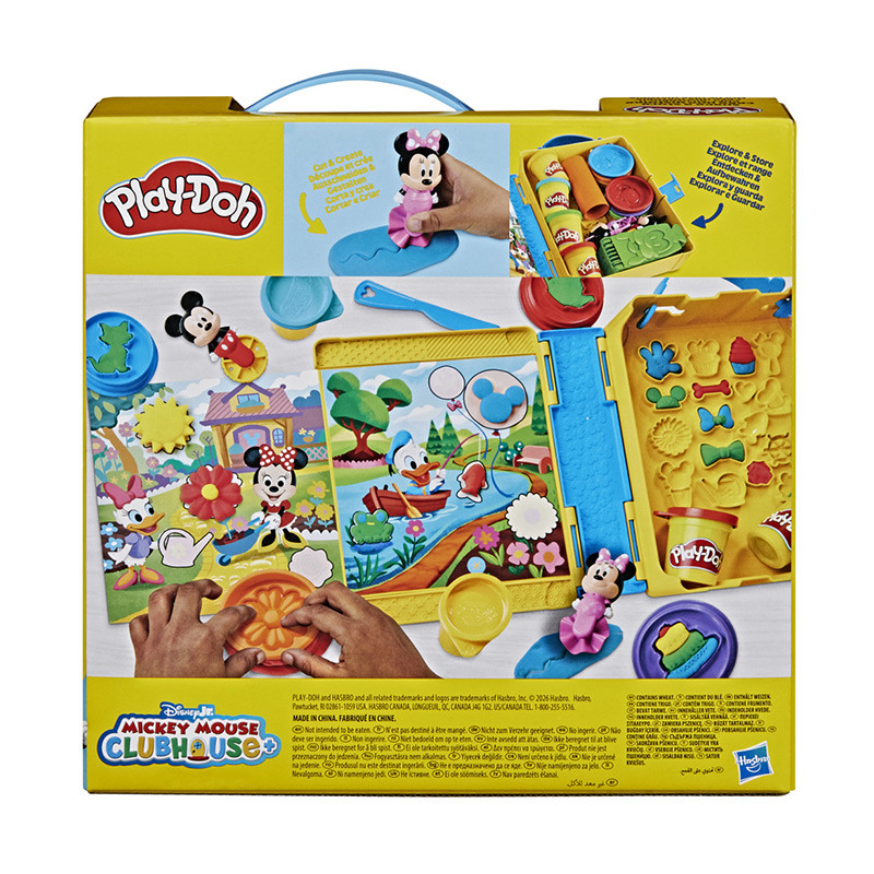 ¡Hay tantas maneras de crear y de explorar con el set Play-Doh Disney Junior Crea una historia! Abre el set de juego con tema de libro de cuentos para niños y crea 4 escenas distintas con las herramientas, la plastilina y los manteles. Los 11 accesorios de Disney incluyen ruedas de Mickey y de Minnie Mouse, una Fábrica de Diversión de Goofy, un cuchillo, un rodillo y 6 sellos. El almacenamiento también cuenta con varios medios moldes integrados para crear aún más formas divertidas. Los 6 botes de colores Play-Doh tienen lengüetas en las tapas para abrirlos con facilidad y empezar a jugar. Al terminar con la diversión del día, simplemente guarda todas las piezas dentro del set de juego hasta la próxima aventura. Copyright Disney. PLAY-DOH y HASBRO y todas las marcas registradas y logotipos son marcas registradas de Hasbro, Inc.