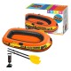 Barco hinchable INTEX Pro 200 con 2 remos incluidos e hinchador manual. En color naranja y gráficos deportivos que aumentan su visibilidad en el agua. Mide 102x196x33 cm y tiene capacidad para 2 personas a partir de 6 años (peso máximo 120 Kg). Dispone de 2 soportes para remos, cuerda de agarre y asa se sujeción en proa. Suelo hinchable y 4 cámaras de aire, 1 auxiliar. Incluye parche.