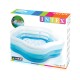 Piscina hinchable infantil con forma de estrella INTEX. Tiene capacidad para 460 litros de agua, mide 185x180x53 cm y cuenta con 3 cámaras de aire diferenciadas por colores para una mayor estabilidad y resistencia. Cuenta con suelo acolchado para mayor comodidad e incorpora un tapón de vaciado para un drenaje más fácil y controlado. Incluye kit de reparación de pinchazos.