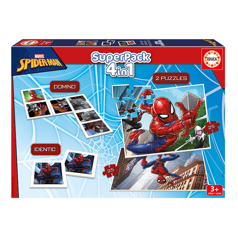 Superpack es una nueva fuente de diversión para los más pequeños a partir de 3 años. Una inmejorable combinación entre juego y educación con la garantía de calidad de Educa®. Este nuevo Superpack contiene 2 puzzles de 25 piezas, 1 Identic memo game de 24 cartas y 1 dominó con 21 piezas. Cuatro juegos en uno que harán las delicias de los pequeños mientras aprenden divirtiéndose.