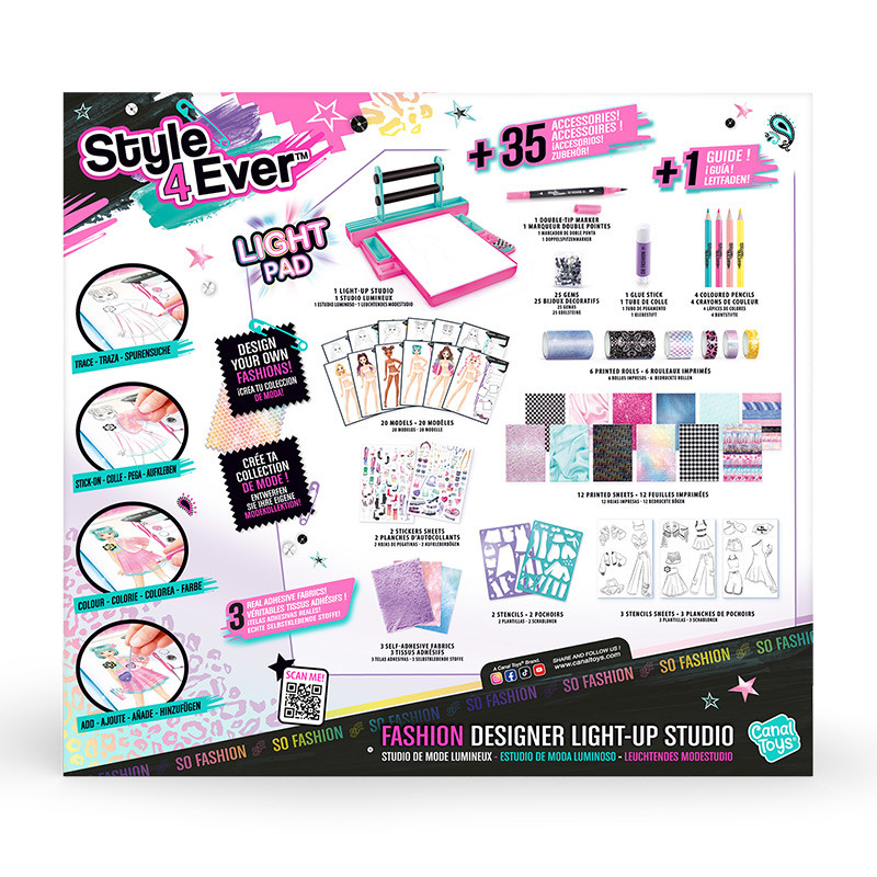ADVERTENCIAS: ¡Advertencia! No apto para niños menores de 36 meses. Piezas pequeñas. Peligro de asfixia. Retire todos los elementos y piezas del embalaje antes de dar el juguete a su hijo (por ejemplo, clips de plástico). ¡Lávese las manos después de su uso! Manténgalo alejado de la boca y los ojos. Los productos que llevan el logotipo de la papelera tachada no pueden tratarse como residuos domésticos y deben llevarse a un punto de recogida adecuado, de acuerdo con el Reglamento europeo sobre residuos 2012/19/UE. Necesita 3 pilas AAA de 1,5 V (no incluidas). Consulte la información sobre las pilas en la hoja de instrucciones que se encuentra en el interior. Imágenes no contractuales. Los colores del contenido y los detalles pueden variar. Servicio al consumidor España: Contactar con Canal Toys España S.L. Avda. San Sebastián 1 03540 Alicante o online@canaltoys.fr