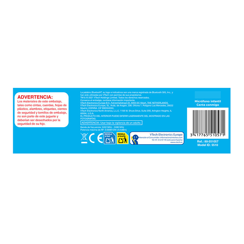- ¡CUIDEMOS DEL PLANETA! En VTech trabajamos para reducir nuestro impacto medioambiental, como parte de un enfoque eco-responsable.