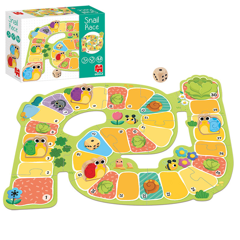 Este juego de mesa anima a los niños a desarrollar habilidades cognitivas y sociales clave a través de un juego por turnos atractivo. Los jugadores trabajan hacia un objetivo compartido o individual: ayudar a uno de los caracoles a llegar al final del tablero. En el camino, se encuentran con casillas que avanzan o retrasan el progreso, fomentando la toma de decisiones, el reconocimiento de números y la adaptabilidad. Ya sea jugado de forma cooperativa o competitiva, el juego apoya el turno, la paciencia y el pensamiento estratégico en un formato divertido y accesible.