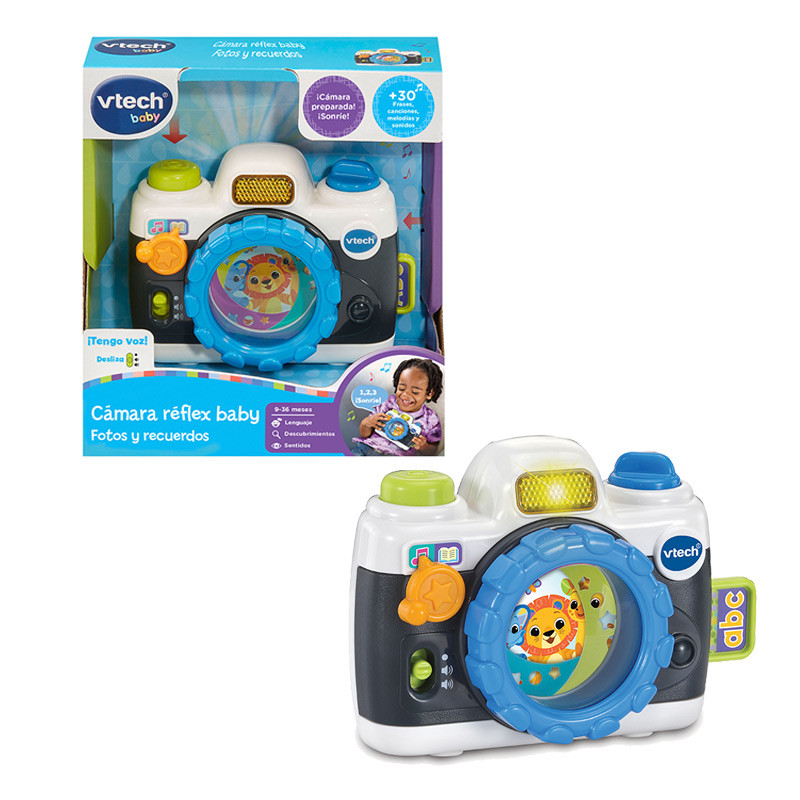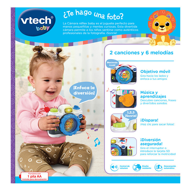 GIRA EL OBJETIVO: Gira el objetivo hacia ambos lados para simular un movimiento zoom real y activar canciones, melodías y sonidos de cámara. Cuenta con una rueda para girar y una tarjeta SD que salta al pulsarla.