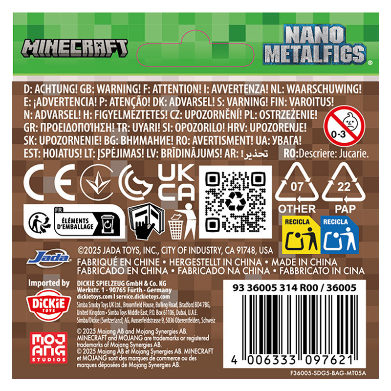 Figura de metal 4 cm de un popular personaje de la serie de videojuegos Minecraft. En sobre cerrado sorpresa, colecciona los 13 personajes disponibles en esta 5ª edición. En display de 24 unidades. NOTA: Solo recibirás 1 figura al realizar tu pedido; ¡la selección es aleatoria!
